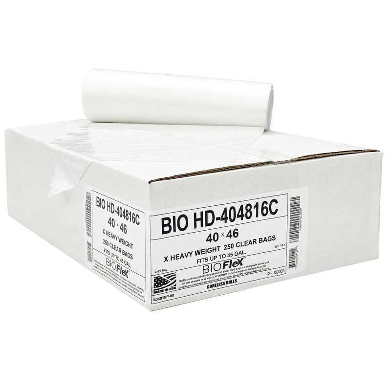 • BioFlex enhances the biodegradation of plastic trash bags in a biologically active land fill (not available in all areas)