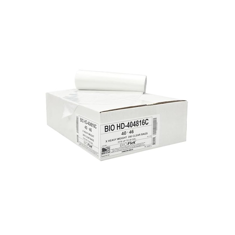 Aluf Plastics 45 Gallon Clear Trash Bags (250 Count) With BioFlex Technology - 40" x 48" - 16 Micron Equivalent High Density Garbage Bags