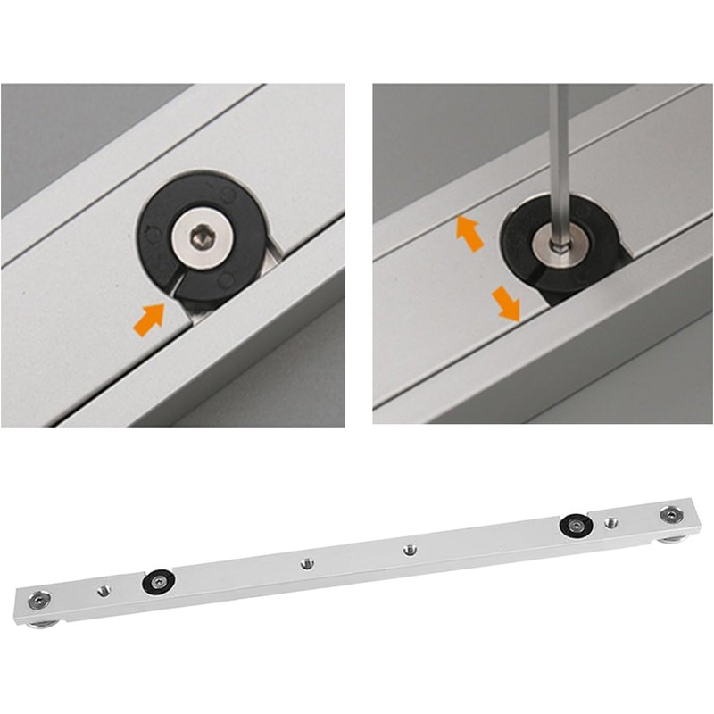 • Product Size: The T-Slot Track Bar is available in two size lengths, one is 300mm (11.8in) long and the other is 450mm (17.71in), 19mm (0.75in) wide, 9.5mm (0.37in) thick, and the diameter of the two pulleys is 22.8mm (0.9in)
