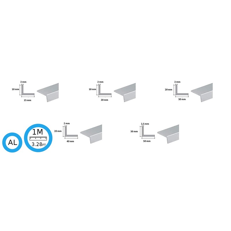 Aluminium Angle Aluminium Extruded Angle Corner Wall Protector -Various Size- LONG 1M (15x15x1,5)