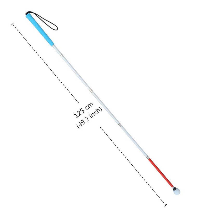 Aluminium Folding Long Stick with 5 Stick Segments, Plastic Rolling Tip, White Stick for Blind People (Blue Handle, 115 cm)