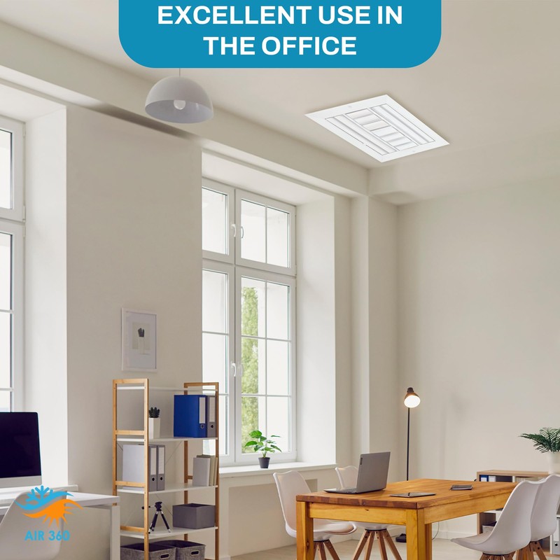 Besides the functionality and practicality, the Air 360 AC ceiling grille boasts a sleek and minimalistic design that effortlessly blends into and enhances any interior decor. With clean lines and a durable, glossy powder-coated finish, this ceiling grille elevates the aesthetic appeal of any room with an attractive contemporary appearance. Whether it's for your home, office or retail space, this grille is sure to impress both guests and clients alike.