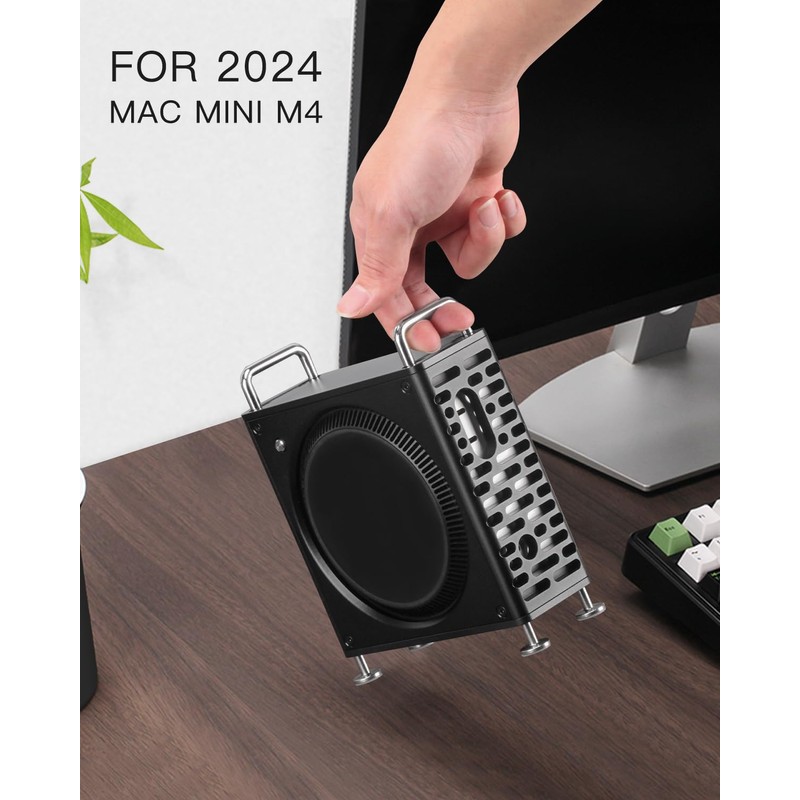 - Elegant Aluminum Alloy Design: Made of high-quality CNC-machined aluminum alloy, this case transforms your Mac Mini M4 into a desktop decoration similar to the appearance of the Mac Pro case. It enhances the modern look while providing excellent durability