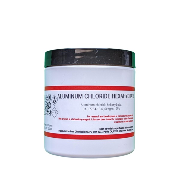 Aluminum chloride hexahydrate, Reagent, 99%, 100 grams