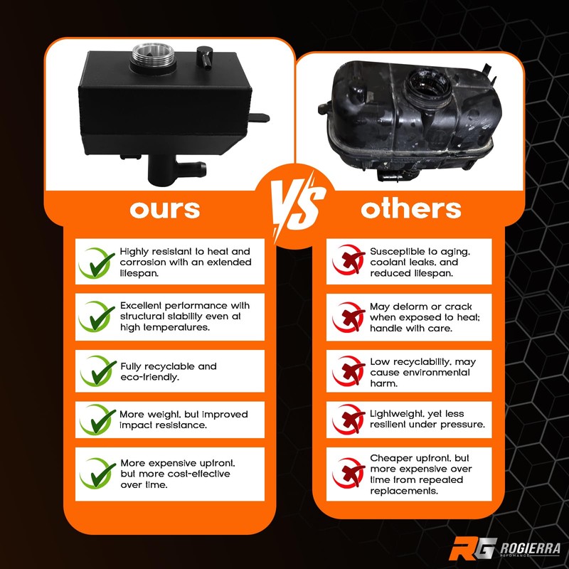 - 【UPGRADED ALUMINUM CONSTRUCTION】 Crafted from premium 5052 aluminum (2.5mm thick), this coolant tank is 30% more impact-resistant than plastic OEM versions. Engineered to withstand extreme temperatures without cracking or deforming.