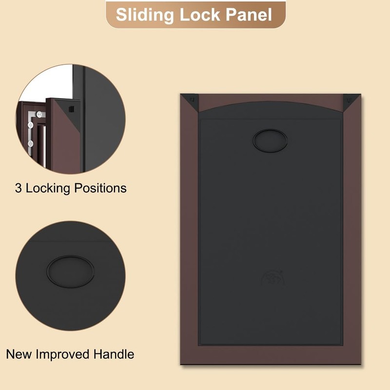 - 【Double locking panels】Two adjustable locking panels, which not only lower or raise the height of your dog go through, but also reduce heat transfer in rough weather, and keep other unwanted visitors out of the house.