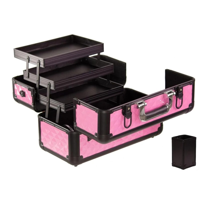 Aluminum Lash and Brow Case with Holder and Shoulder Strap Pink