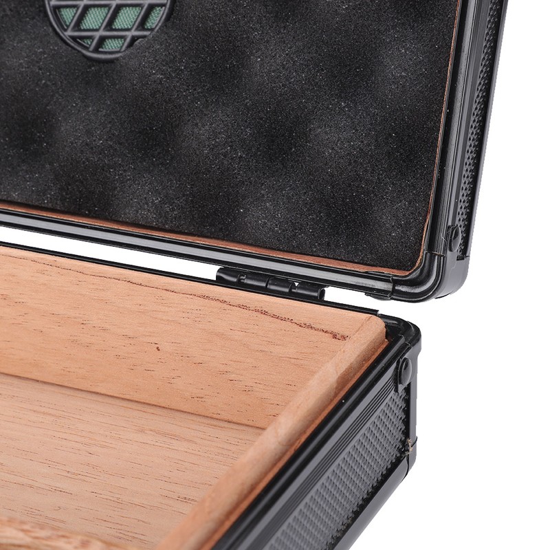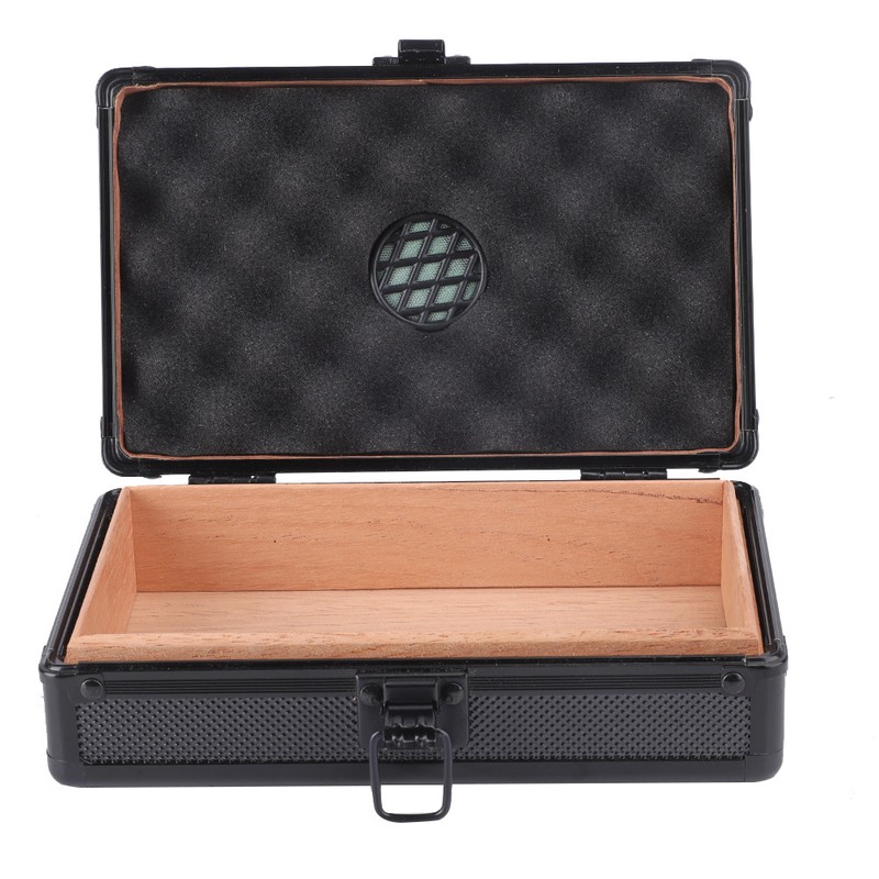 1、Made of aluminum exterior with 100% cedar lining and removable tray for easy cigar preservation. 2、Unique airtight design can protect the humidity and aroma of cigar for a long time. 3、The interior is made of cedar wood, whose unique fermenting effect is conducive to the maturity of the cigar, ensuring a pure aroma and good taste. 4、Equipped with a humidifier to maintain the required humidity in the cigar box. 5、Can contain about 10 cigars, suitable for family storage or travel.