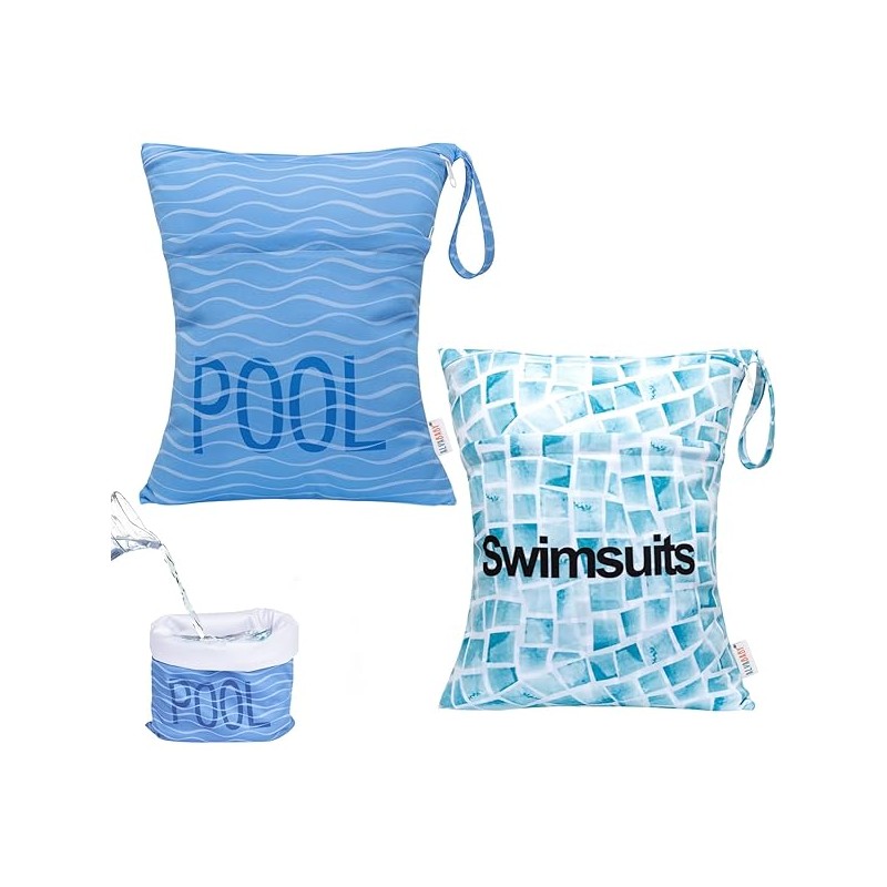 ALVABABY 2pcs Superior Waterproof Wet Dry Bags,Reusable with Two Zippered Pockets, Baby Cloth Diaper Wet Bags,Travel,Beach,Pool,Daycare,Soiled Baby Items,Yoga Gym Bag,Wet bag for Swimsuit