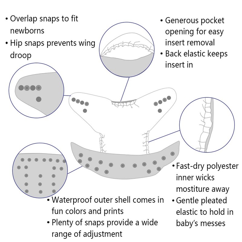 - HAPPY BABY -Hip snaps and crossover snaps to prevent “wing droop”. Washable, waterproof and breathable.Comfortable elastic legging area to prevent leaking.