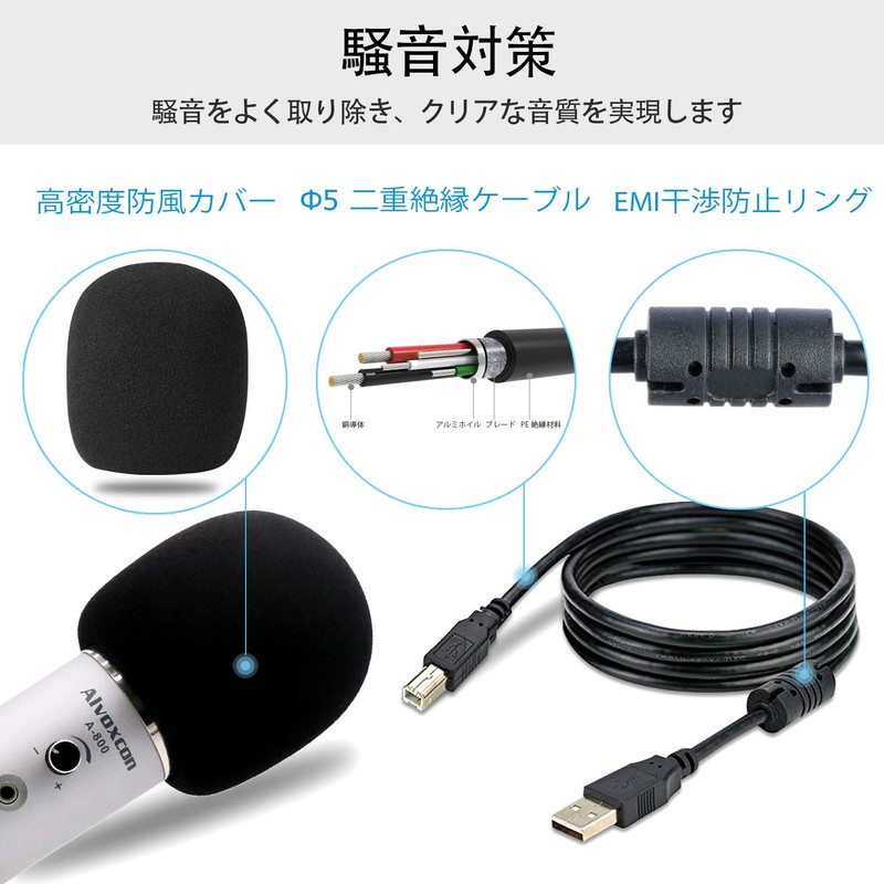 Alvoxcon PC Microphone, USB Microphone, Condenser Microphone, Commentary Microphone, Unidirectional, Earphone Terminal, Adjustable Volume, Skype Broadcasting, Recording, Real Time Monitor,
