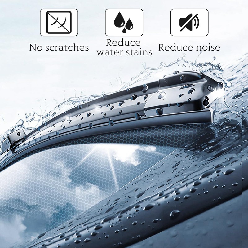 - Clear field of view: rubber windscreen wiper. The three-dimensional layer is easy to attach to the surface of the windscreen wiper and effectively reduces water stains, scratches and noise, ensures a clear field of view and allows you to focus better on driving in rain, snow or wet conditions.