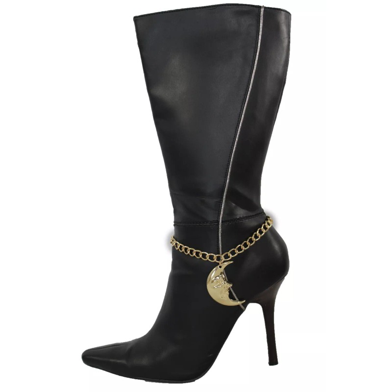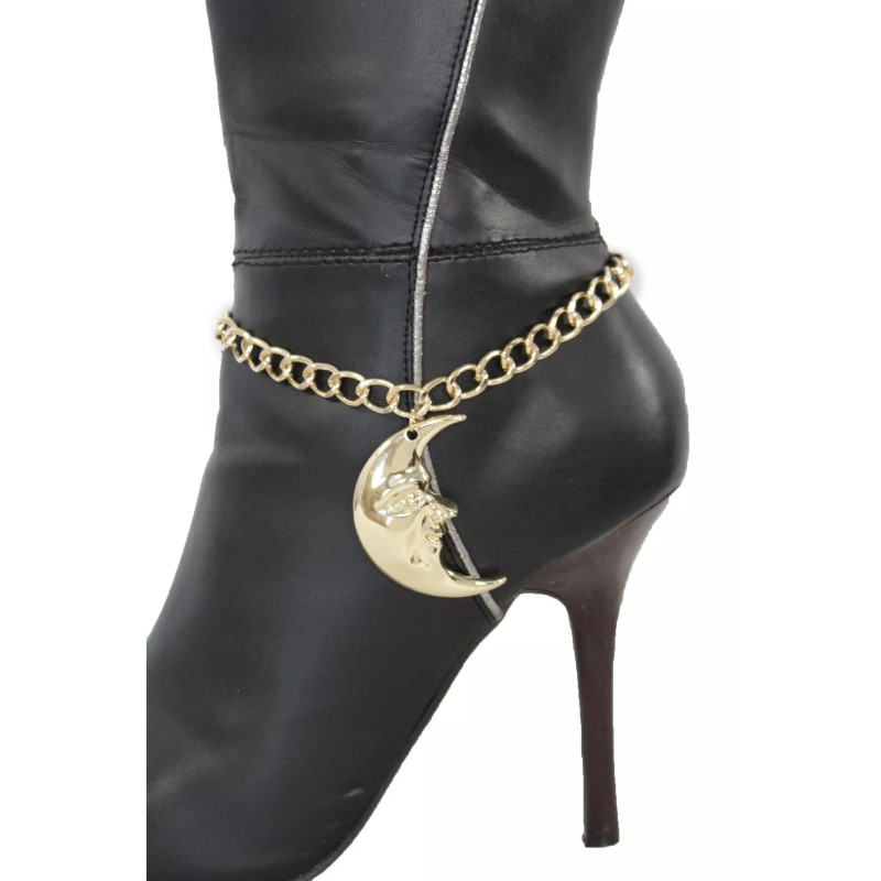 Alwasytyle4you Women Gold Metal Chain Boot Bracelet Anklet Shoe Shinny Big Moon Charm Jewelry