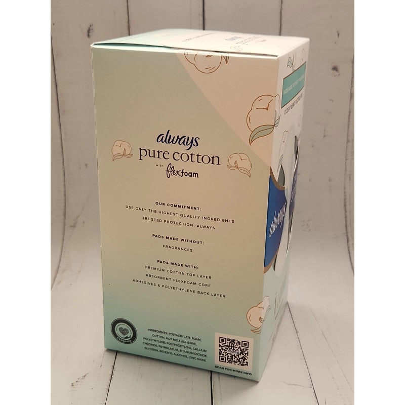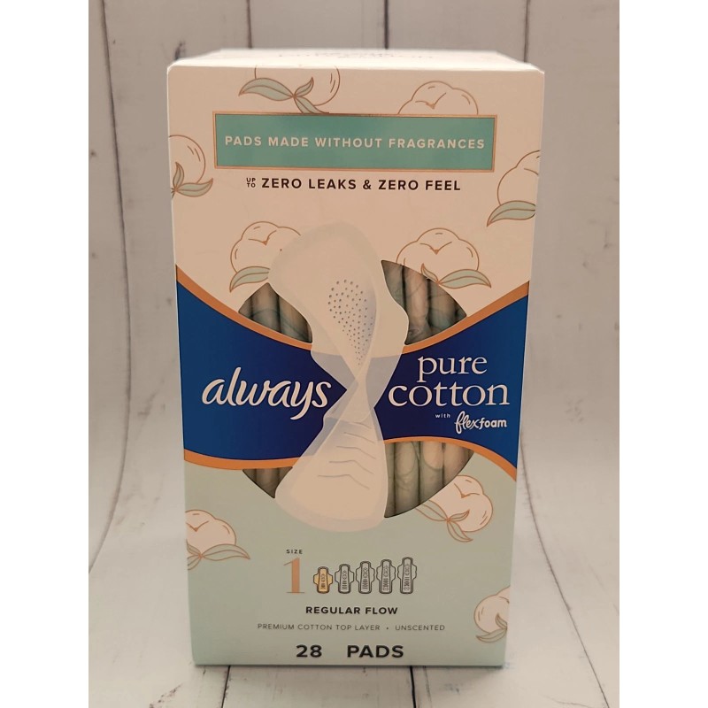 Always Pure Cotton Feminine Pads, Size 1, Regular Flow, Unscented, 28 Pads.