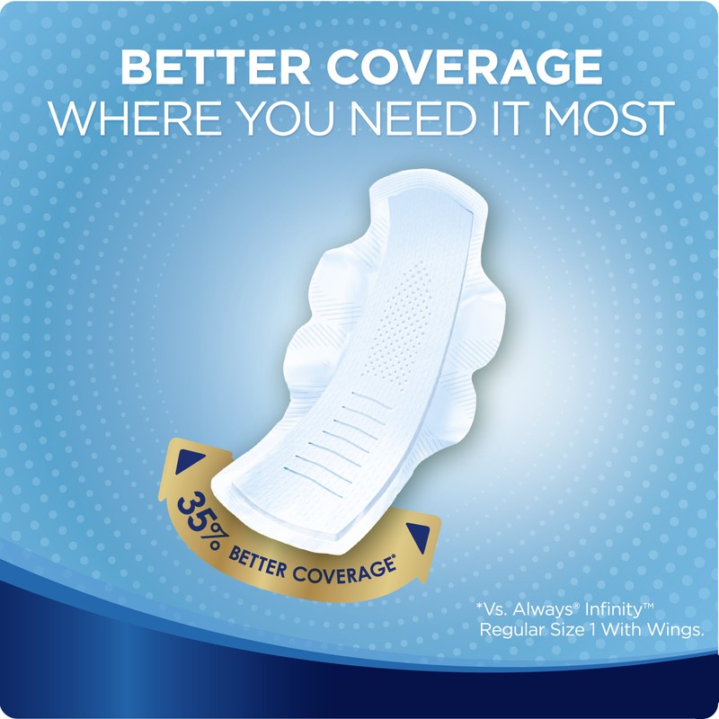 - 35% better coverage (Vs. Always Infinity Regular With Wings)