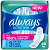 Always Ultra Thin Feminine Pads with Wings for Women, Size 3, Extra Long Super Absorbency, Unscented, 38 Count