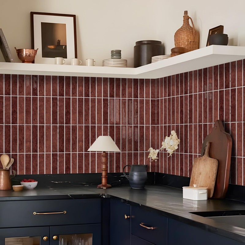Alwayspon 10 Sheets 12" x12'' Retro Red 3D Vinyl Backsplash Tiles, Self-Adhesive Peel and Stick Wall Tile Stickers Stick on Subway Tiles for Kitchen Bathroom Wall