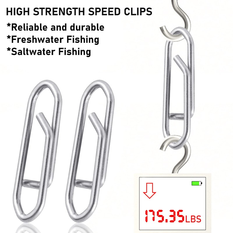 - HIGH QUALITY FISHING CLIPS. These one-piece fishing power clips are made of high-strength stainless steel, with high stability, high hardness, abrasion resistance and corrosion resistance. Suitable for saltwater and freshwater fishing.