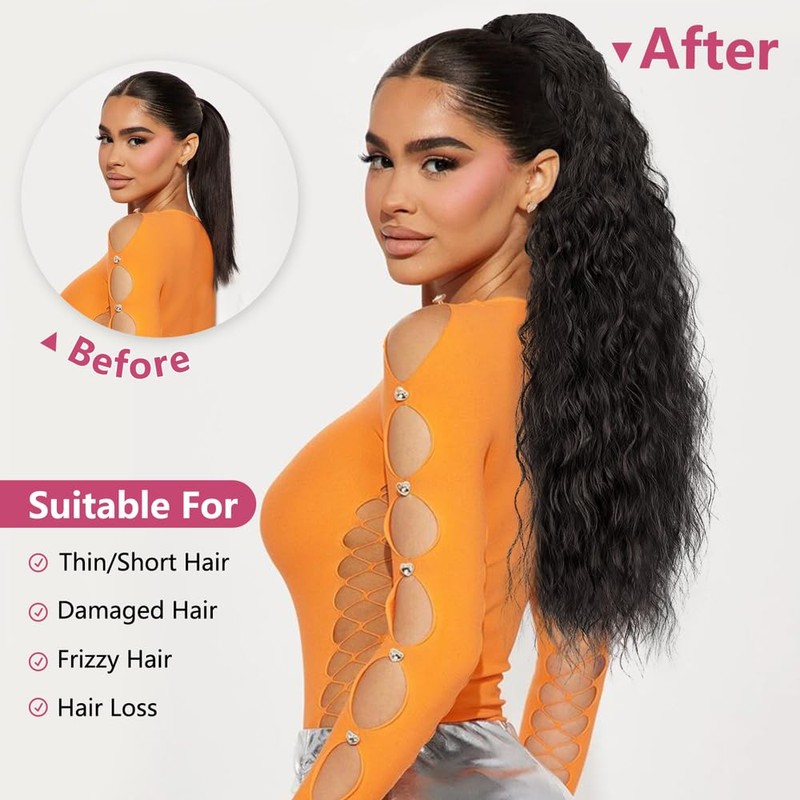 - ❤【Easy to Wear】--With our ponytail extension, all you do is simply open the claw comb at the top of the ponytail and clip the hair extension over your own bun or ponytail. It takes one step to put our ponytail extension into your hair and is effortless!