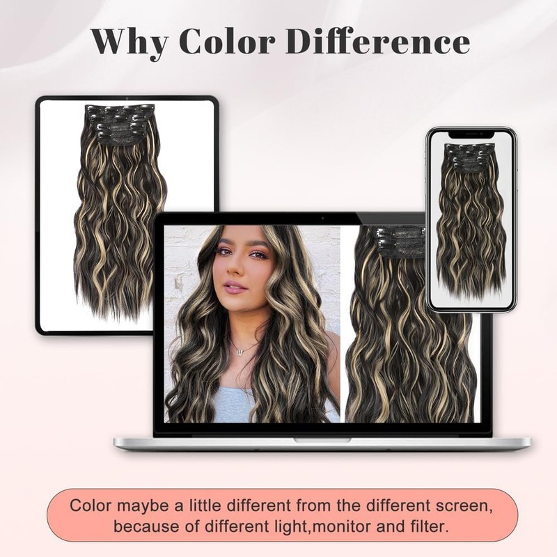 ALXNAN Clip in Hair Extensions for Women, Black Mix Blonde Long Wavy Hair Extensions Clip Ins 4PCS 20 Inch Synthetic Soft and Natural Thick Hair Pieces for Women