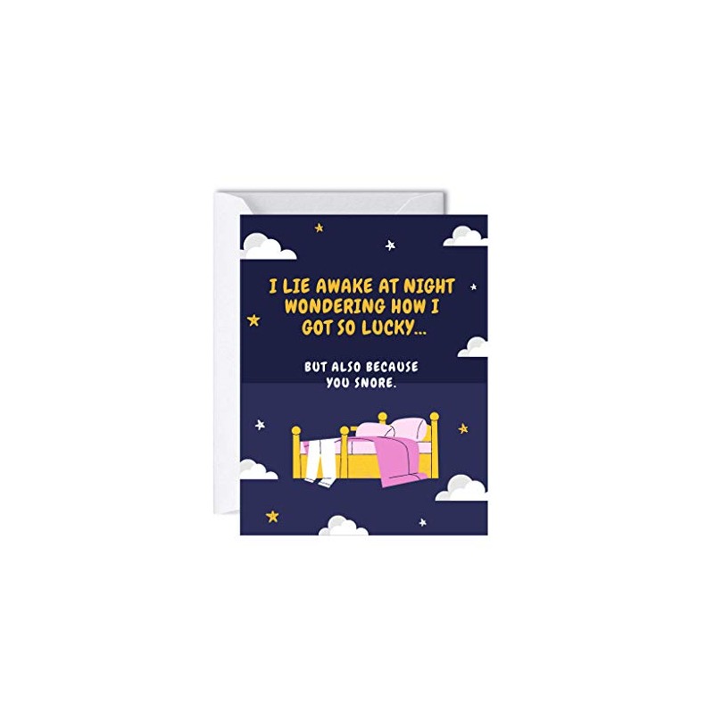 ALY LOU Funny Anniversary Card Birthday Card for Her Him / Husband Boyfriend / Girlfriend Wife / Sarcastic Greeting Card (I lie awake at night wondering how I got to lucky ... snore)