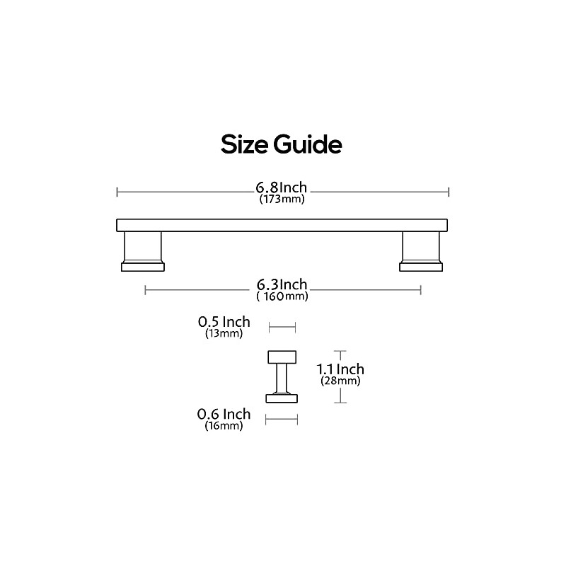 - Overall Length: 6.8" (173mm), Hole Centers: 6.3" (160mm)