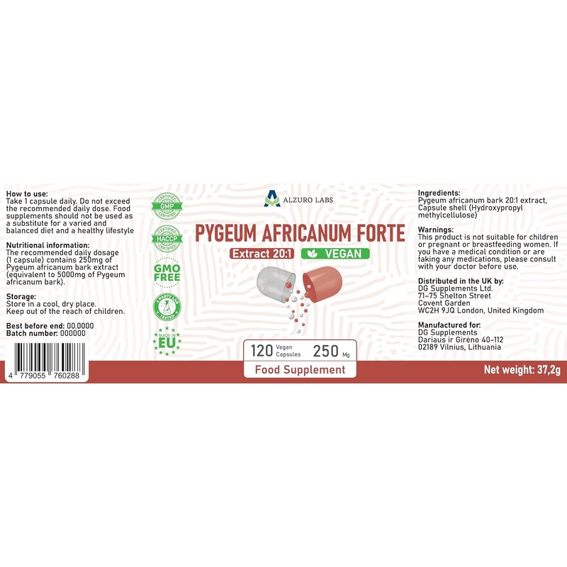 Alzuro Labs Pygeum Africanum Forte, 5,000 mg Equivalent (250 mg 20:1 Extract)...