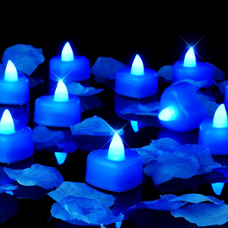 Amagic 1000 Pieces Blue Artificial Rose Petals with 12 Blue Heart LED Tea Lights, Rose Petals, and Candles Set for Proposal, Anniversary, Romantic Night, Wedding Decor