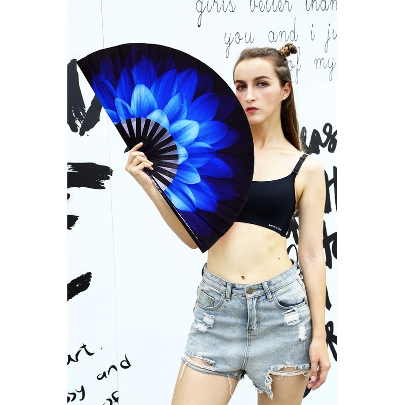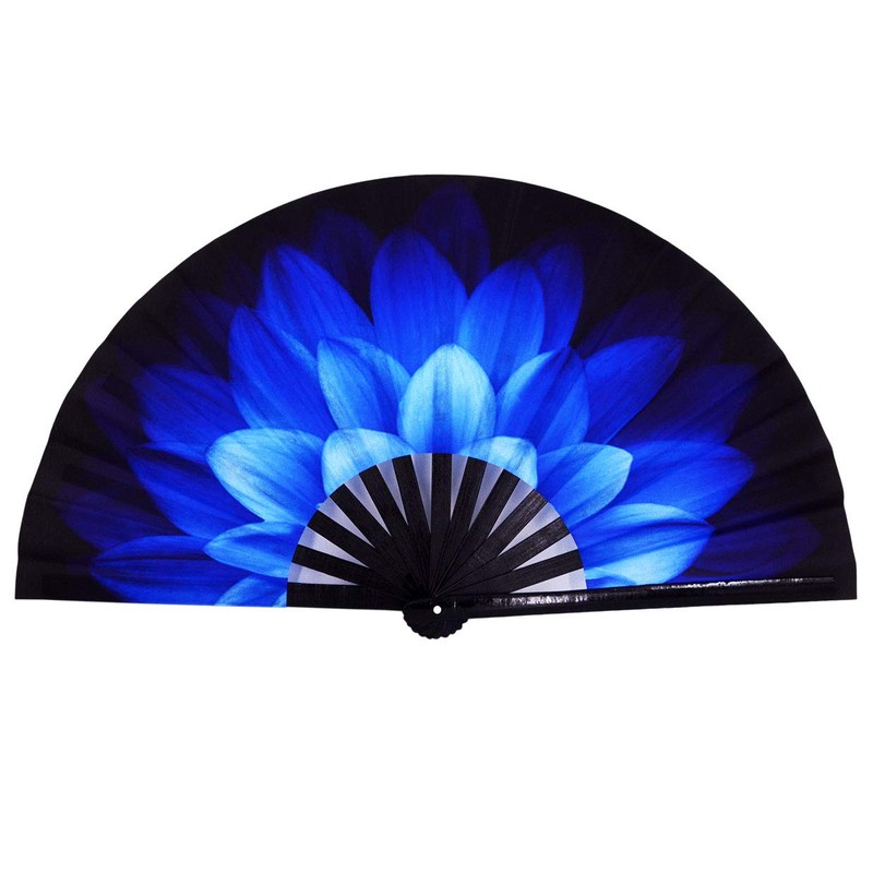 Amajiji Large Folding Fan, Rave Festival Accessories for Men/Women, Chinease/Japanese Bamboo Hand Fan, Performance Decoration Gift Dance Handheld Fan (Blue Flowers)