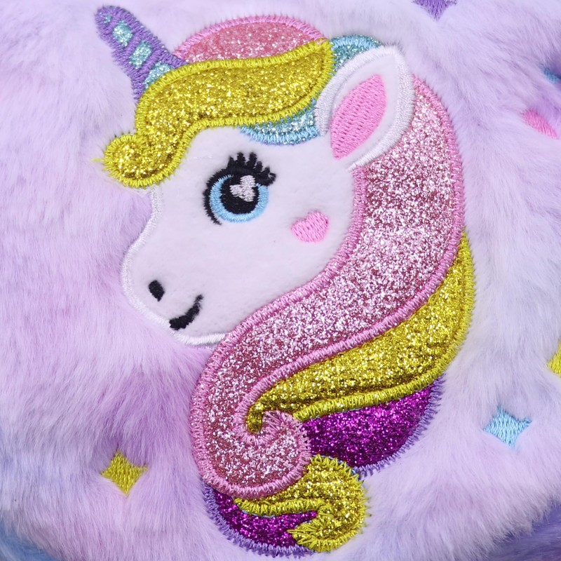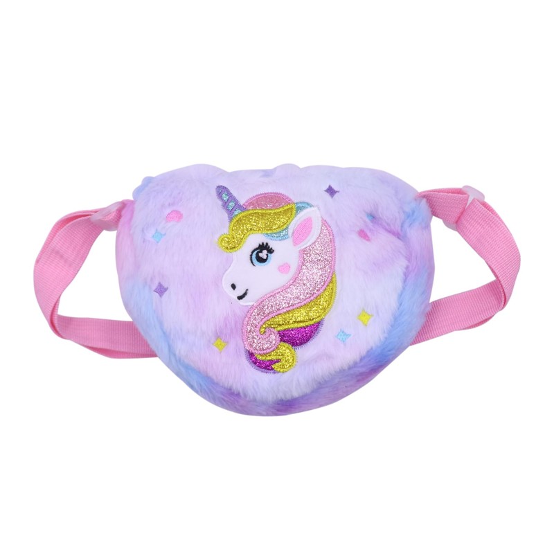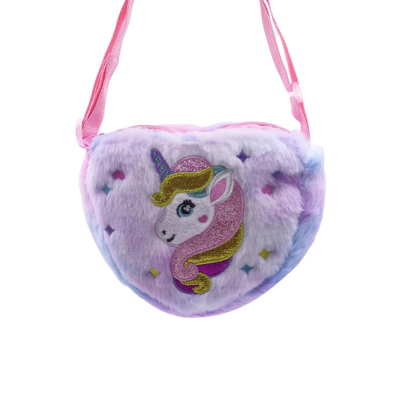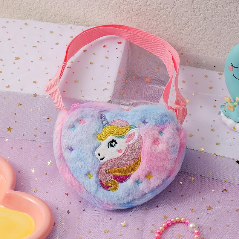 - HIGH QUALITY & FASHION--Made of super soft plush with heart shape design. It comes with an adorable unicorn feature on the front side. The inside lining is polyester fabric which is very durable. With smooth zipper closure, easy for girls to open or close and keeps stuffs safe.