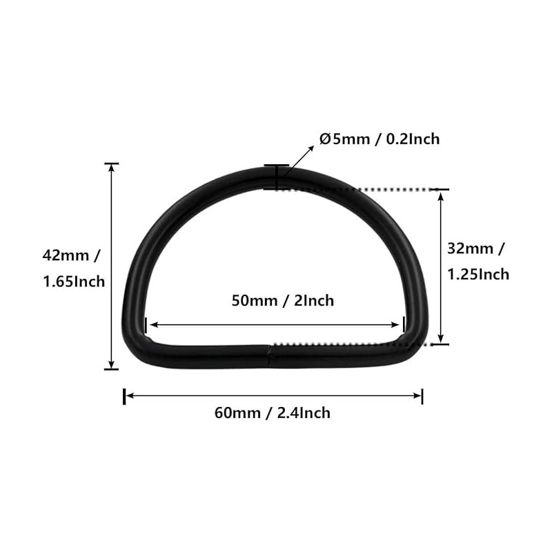 Amanaote Black 2" Inner Diameter D Ring D Rings Non Welded Pack of 6