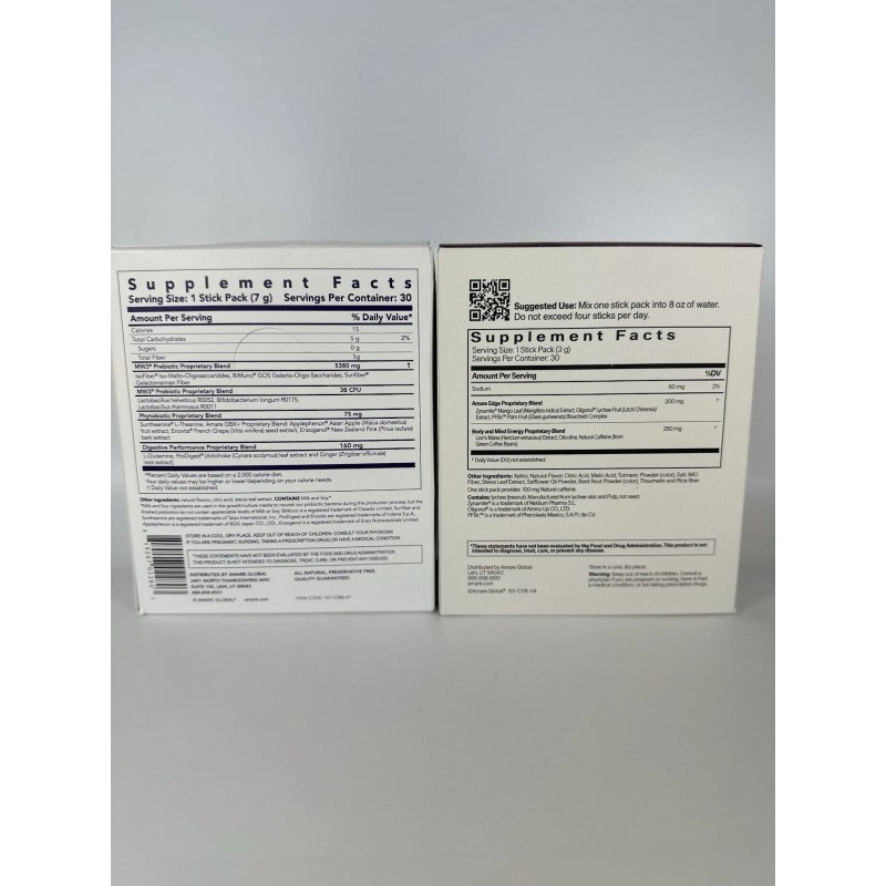 Amare Happy Juice Pack MANGO Plus Unflavored Biotics New BB 10/25 & 11/26
