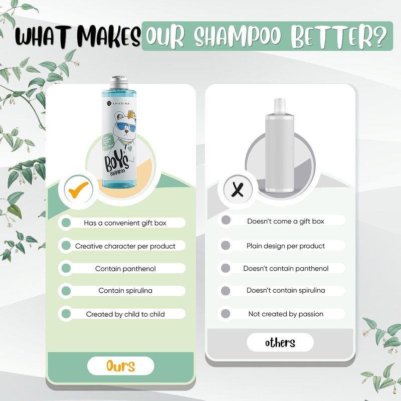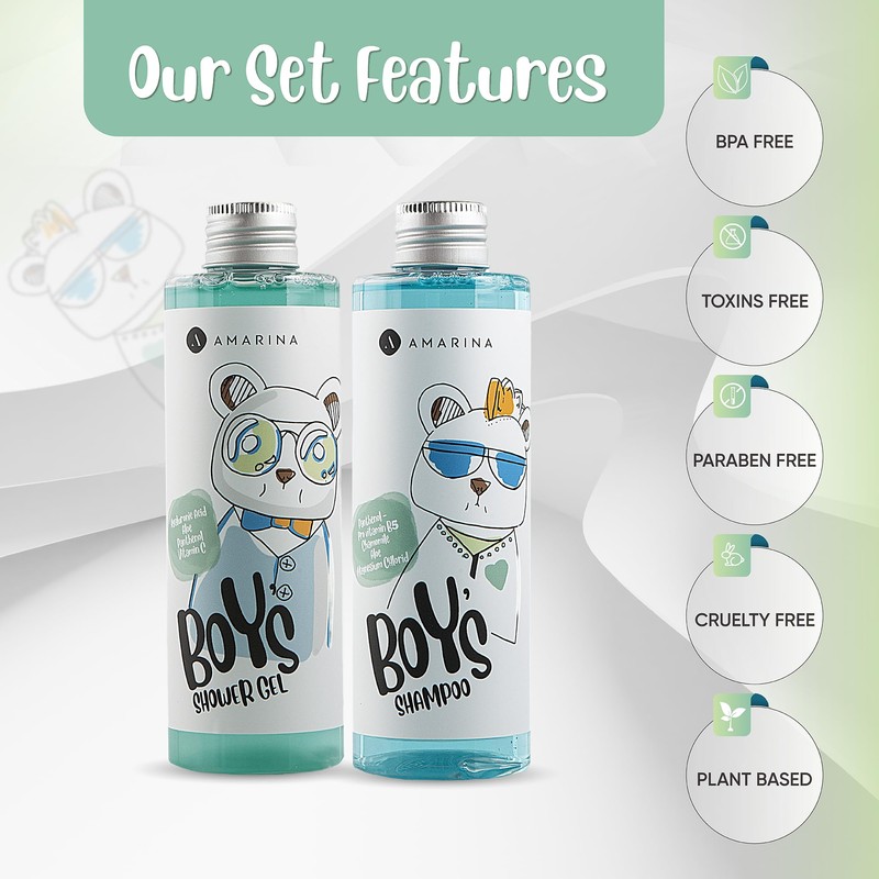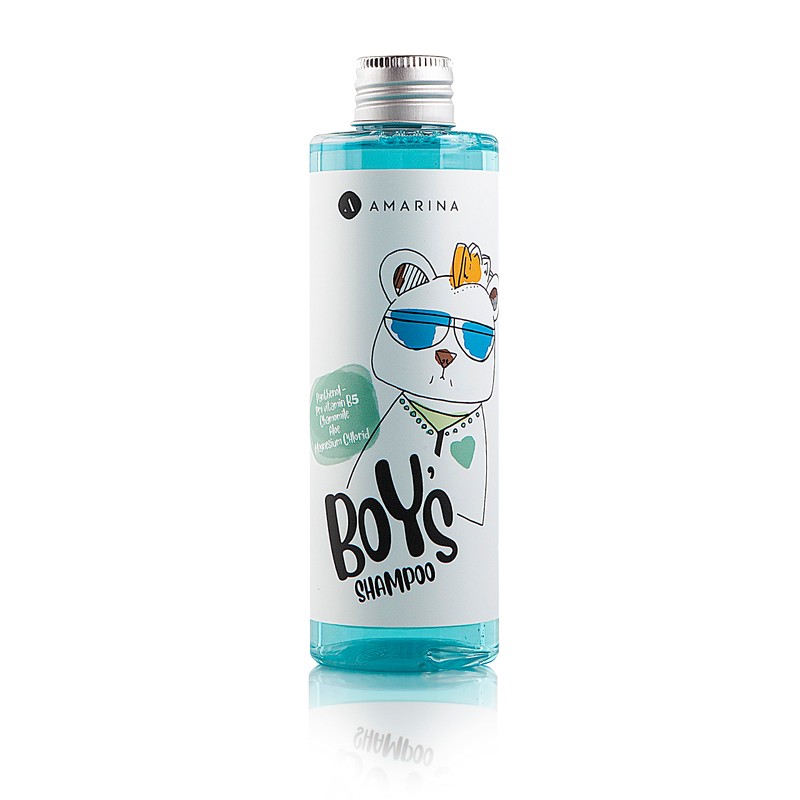 - STRONG AND SHINY HAIR Amarina Boys Shampoo strengthens hair from root to tip, giving it strength, flexibility and shine, making your child's hair enviable.
