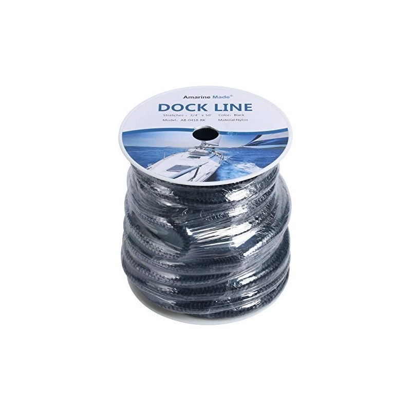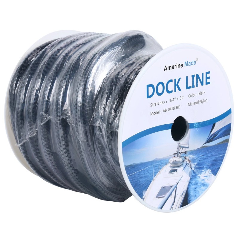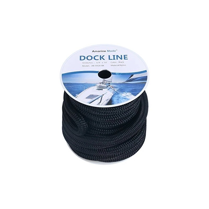 Amarine Made 3/4”50 FT Premium Double Braid Nylon Dock Line Boat Ropes for Mooring Black