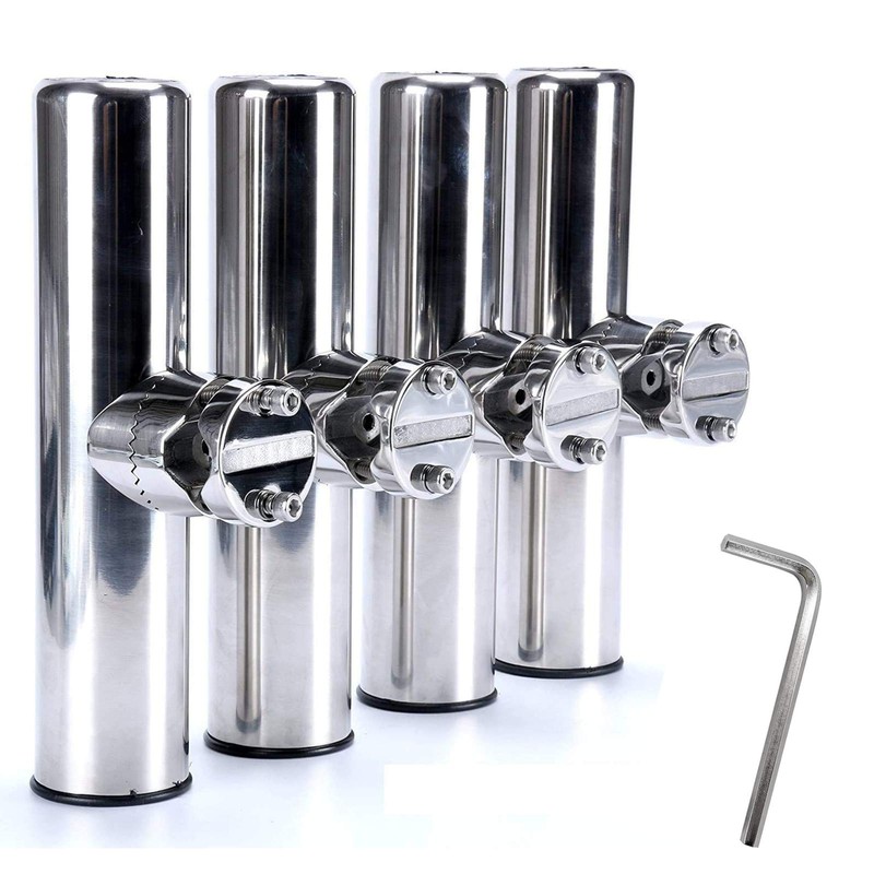 Amarine Made 4Pcs Marine Grade Stainless Steel Rail Mounted Clamp on Fishing Rod Holder for Rails 1" to 1-1/4"