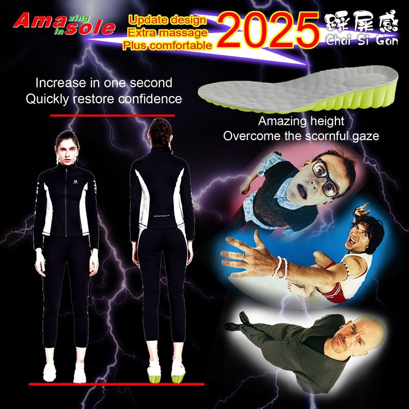 Amasole ® 2025 "Chai Si Gan" super soft insole, specially design for high jump sport,height Increase 15-35mm, shock absorption,high elasticity for Men or Women (DS green-grey, M 15MM)
