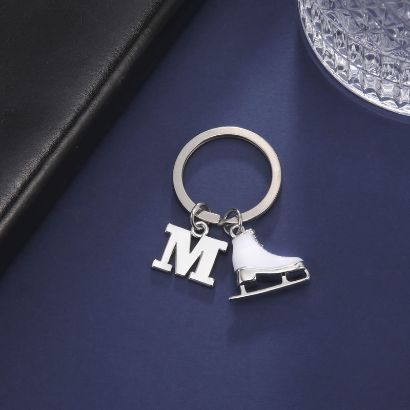 Amaxer White Enamel Ice Skates Shoes Pendant Keyring Alphabet Letters A-Z Ice Skating Stainless Steel Keychain for Unisex, M, Medium