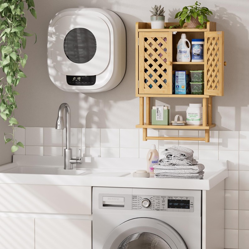- Grille Door Design: The wall bathroom cabinet is designed by updating the grille door to promote air circulation. The geometric hollow weaving design of the grille lines can increase the visual height and visual appeal, and the bathroom storage cabinets original color grille brings a natural and warm feeling.