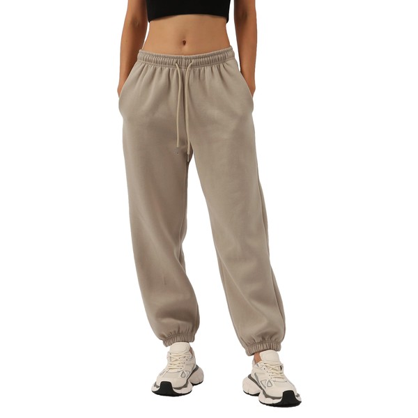 Amazhiyu Womens Fleece High Waisted Sweatpants Drawstring Lounge Joggers Pants Apricot, Large