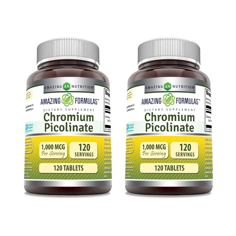 Amazing Formulas Chromium Picolinate | 1000 Mcg Tablets Supplement | Non-GMO | Gluten Free | Made in USA (2 Pack, 120 Count)