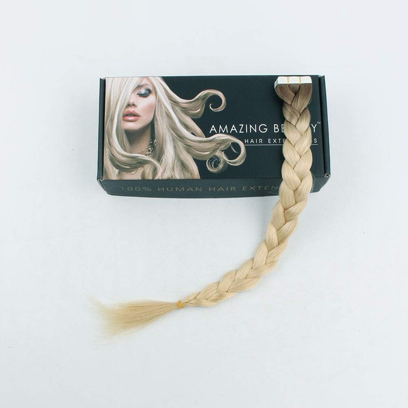 **About Rooted color** Today's trend ditches for a more natural look. Rooted colors are literally everywhere now. Remember your root color differs from the color on your ends. Rooted Color is the art of perfectly blending the right amount of light color together with just the right touch of dark color at the base to deliver a hair experience that's as natural looking as it is flattering. **About tape in hair extensions** With truly invisible and flexible tape-ins, you can move it around, put it in a high ponytail, etc with more confidence. You don't need to worry about falling out. That is why celebrities and fashion icons are choosing to get Tape-Ins. **Hair Details** Material: 100% Remy human hair Color: Platinum Blonde with Chestnut Brown base Tape size: 4x0.8cm Weight: 2.5g/piece, 50g/box There may be slight color differences due to variation in computer screen resolution, ask our staff if you have any questions. **How Many Hair Do I Need?** 1 set of 20 pcs for adding highlights; 2 - 4 sets (40 to 80) pcs for adding volume and length. **Can I Style The Hair?** Yes, these hair can be styled into your hair easily as desired, straighten, curl, or blow dry. **How Does Human Hair Differ From Synthetic Hair?** Synthetic hair damaged when hot tools are applied. Human hair is versatile, can be washed and hot tools can be used. **What Is Your Return Policy?** You, the customer are our first priority. You can exchange your AmazingBeauty hair or obtain a refund if you are not fully satisfied with your purchase. We are always here to help you! **About AmazingBeauty** AmazingBeauty is a well known, experienced manufacturer in the hair industry. We provide 100% Remy human hair to you, the client, without the middleman. This allows us to keep your costs reasonable.