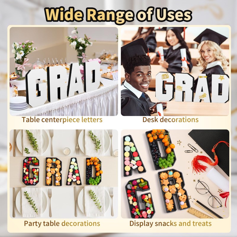 • Multifunctional Decor: these grad graduation letters are indispensable for creating memorable graduation photos and serving as multifunctional decor, use them as graduation photo props or table centerpiece letters to adorn your party tables, will adding a festive touch to your celebration