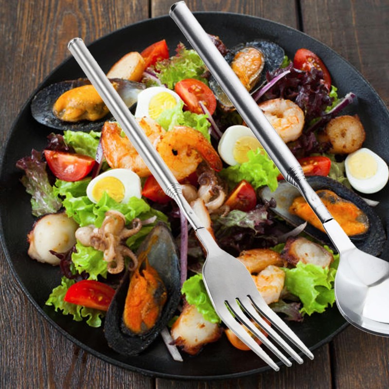 - Adjustable Sizes for Versatility: The fork extends from 22cm to 64.6cm, and the spoon from 23cm to 63cm, providing convenient reach for different dining needs