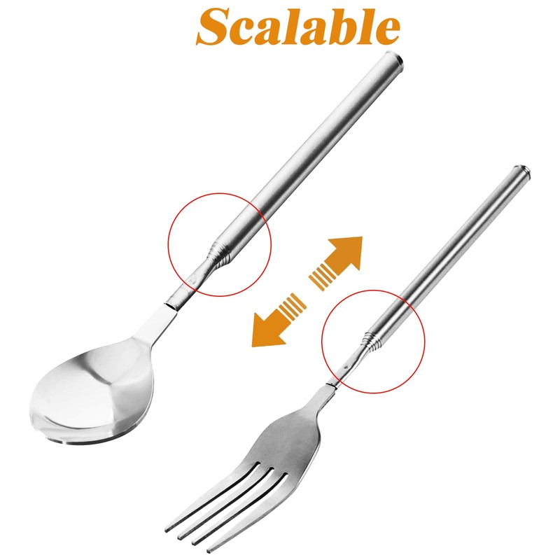 - Package Includes: Receive 1 retractable fork and 1 retractable spoon, both extendable to suit different occasions, from BBQs to casual meals