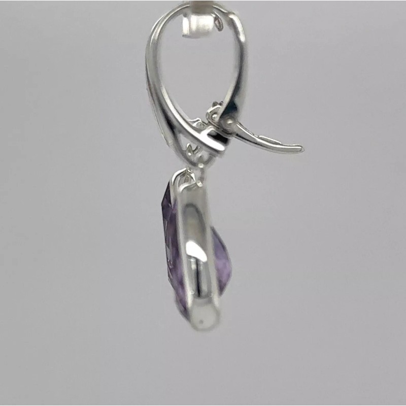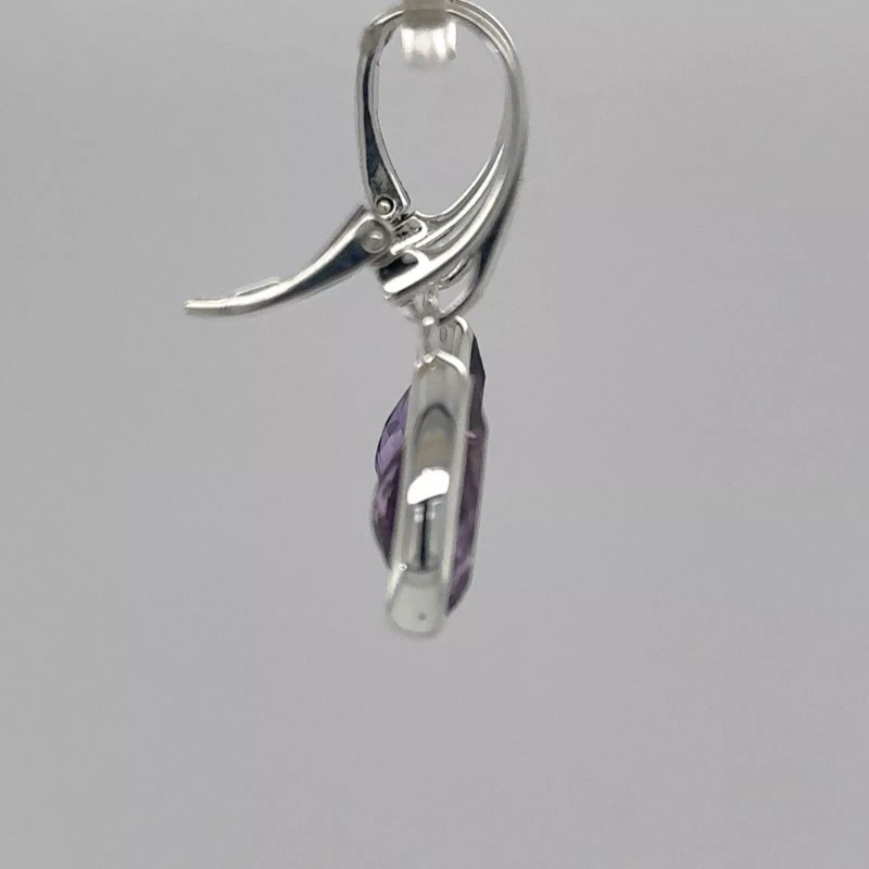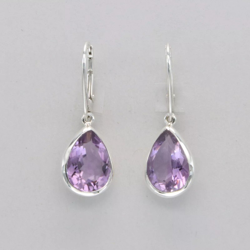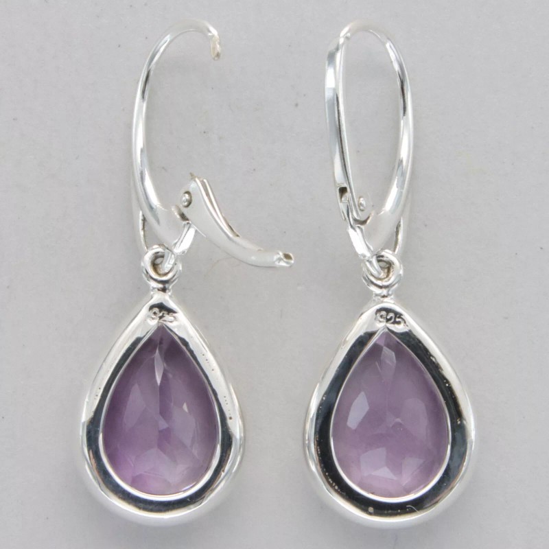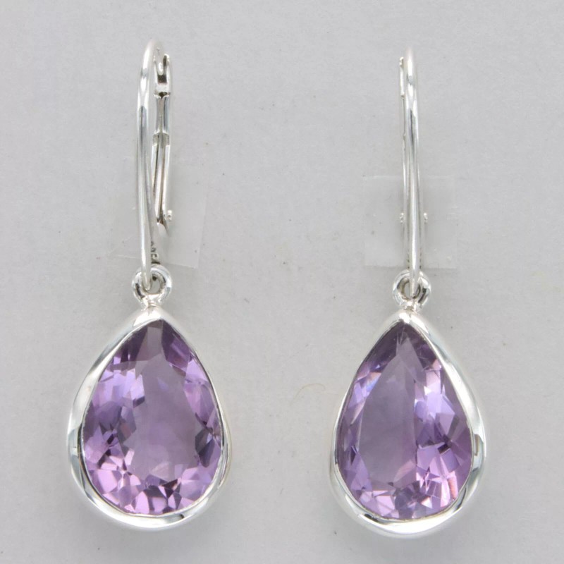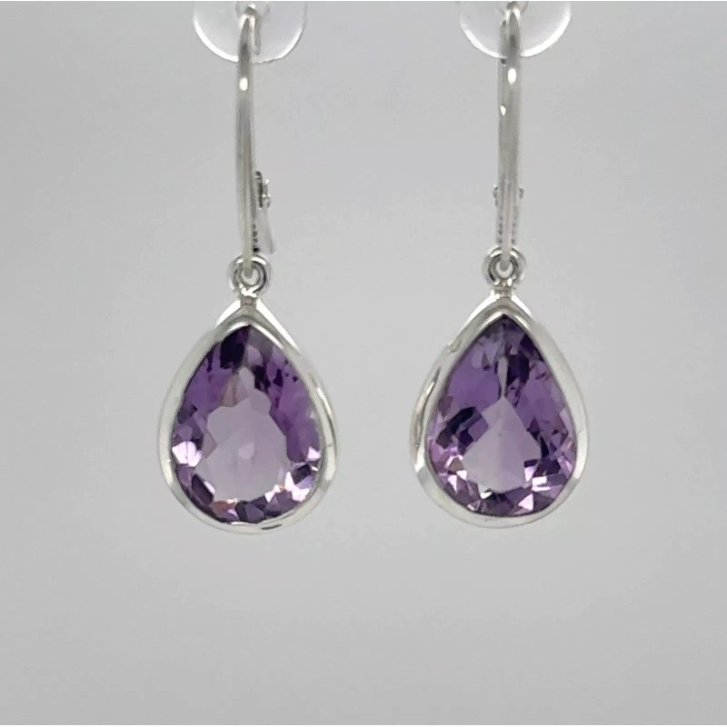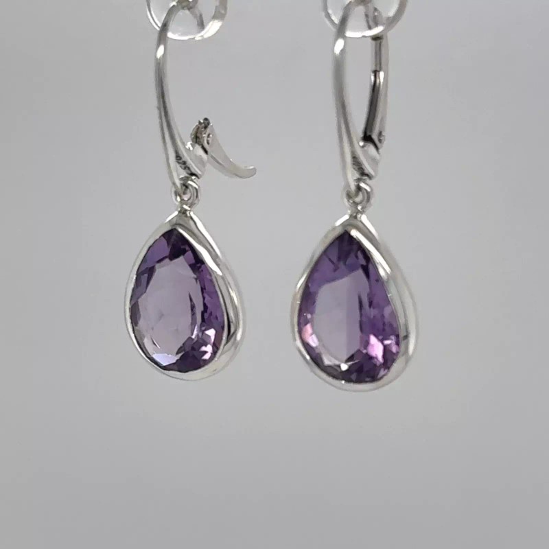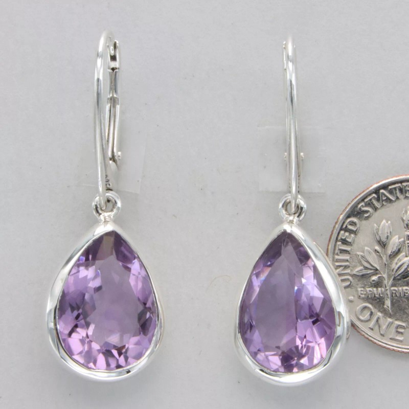Amber America Drop / Pear Purple AMETHYST Teardrop Earrings Leverback 925 STERLING SILVER #64e