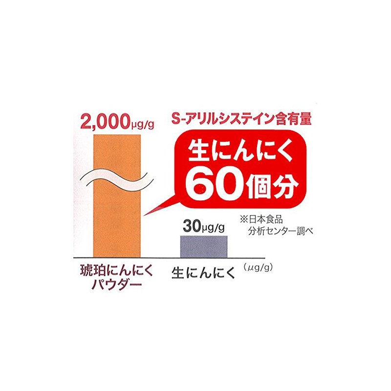 - 2週間じっくりていねいに低温熟成した琥珀にんにくは、生にんにくの約20倍のS-アリルシステインを含みます