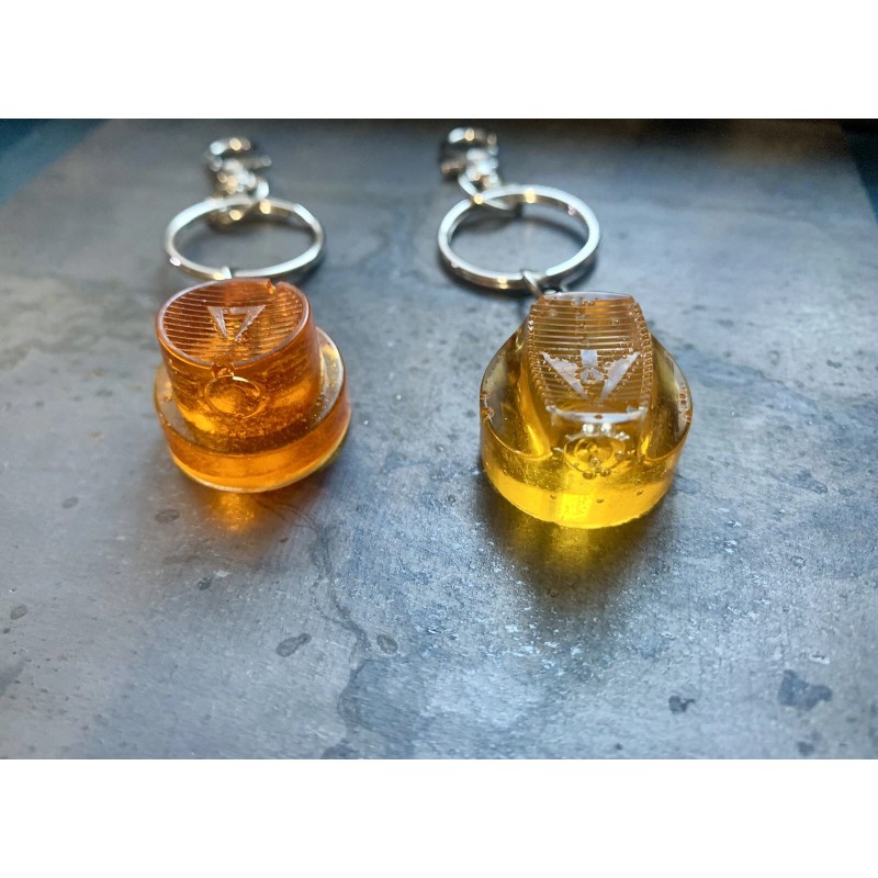 This unique keychain features a beautiful amber graffiti design that is sure to catch the eye. Made with high-quality resin materials, this keychain is durable and long-lasting. The amber spray cap resin piece will add a touch of elegance to any outing.