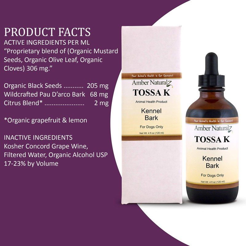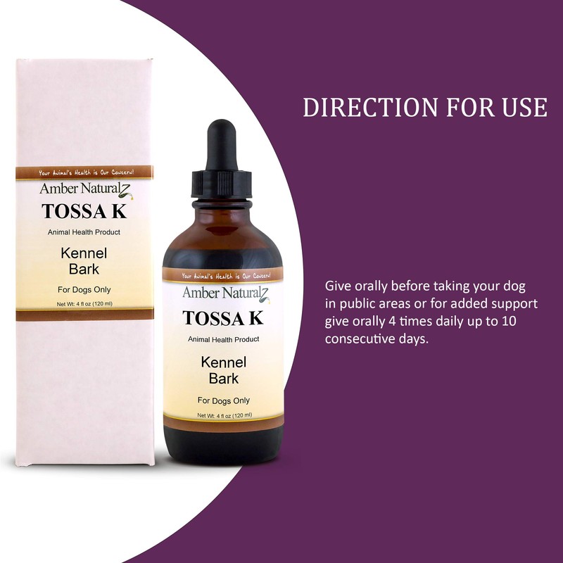 • TOSSA K, KENNEL BARK: Includes one (4oz) bottle, a convenient tool for administration, and easy-to-follow instructions.