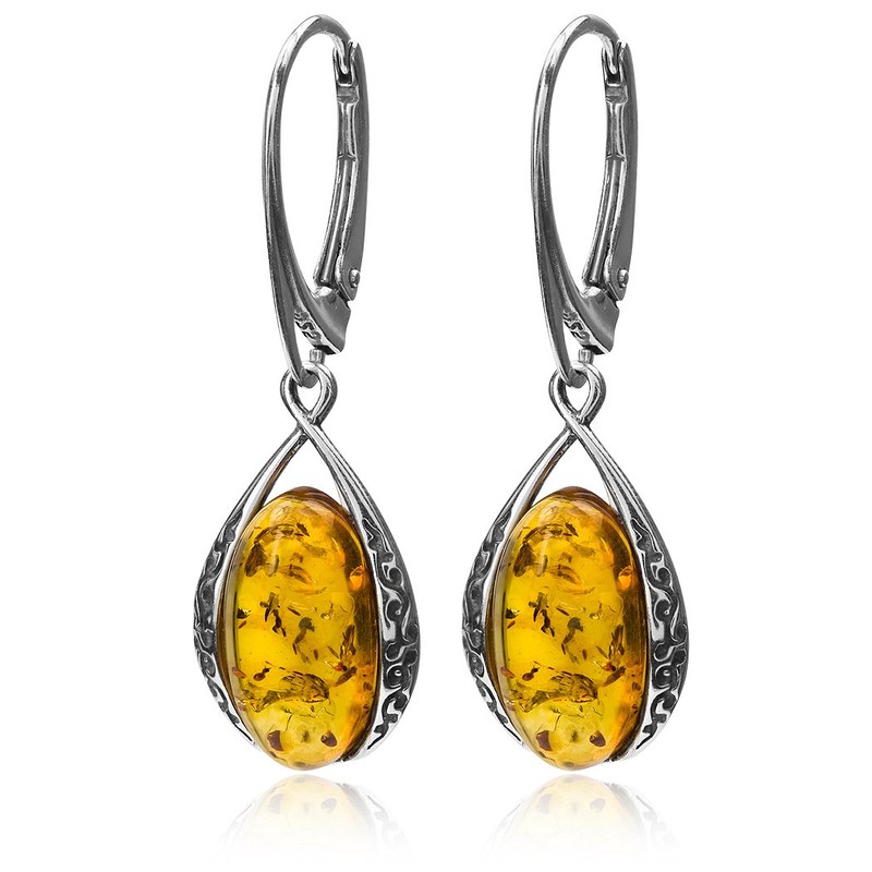 Amber Sterling Silver Oval Leverback Earrings