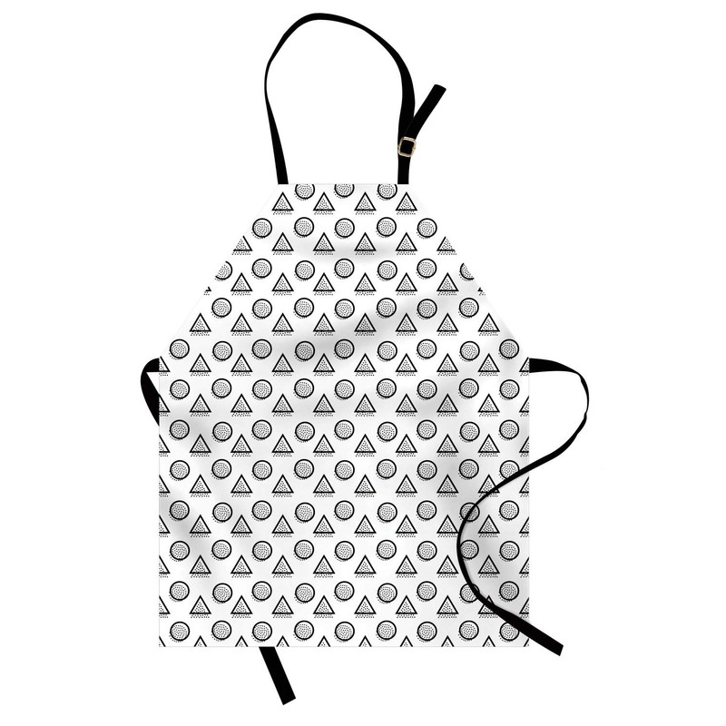 Ambesonne Abstract Apron, Geometric Triangles and Circles with Little Dots Creative Modern Design, Small Apron Bib with Adjustable Ties for Baking Painting, Small Size, Charcoal Grey White